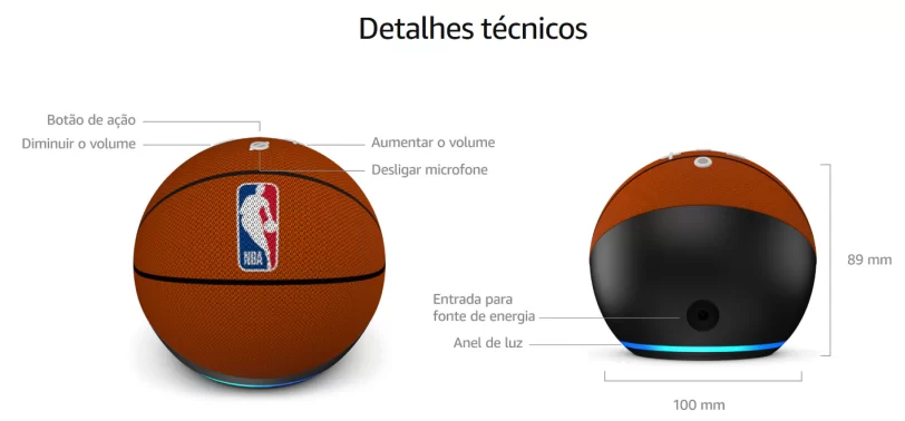 Apesar do design temático, o Echo Dot NBA mantém todas as características que o tornaram um dos smart speakers mais populares: formato compacto, som de qualidade e integração completa com a Alexa. A diferença é o toque esportivo, que dá a impressão de que ele veio direto das quadras.